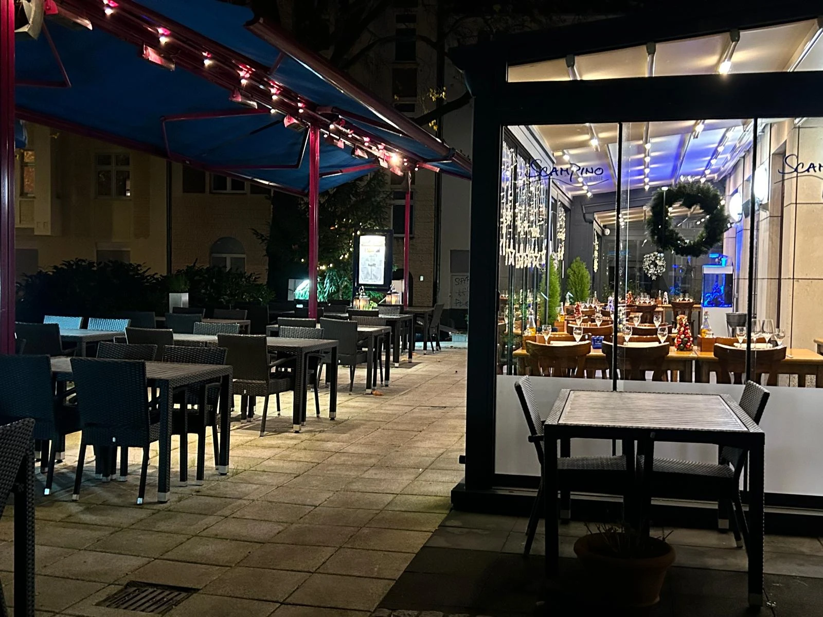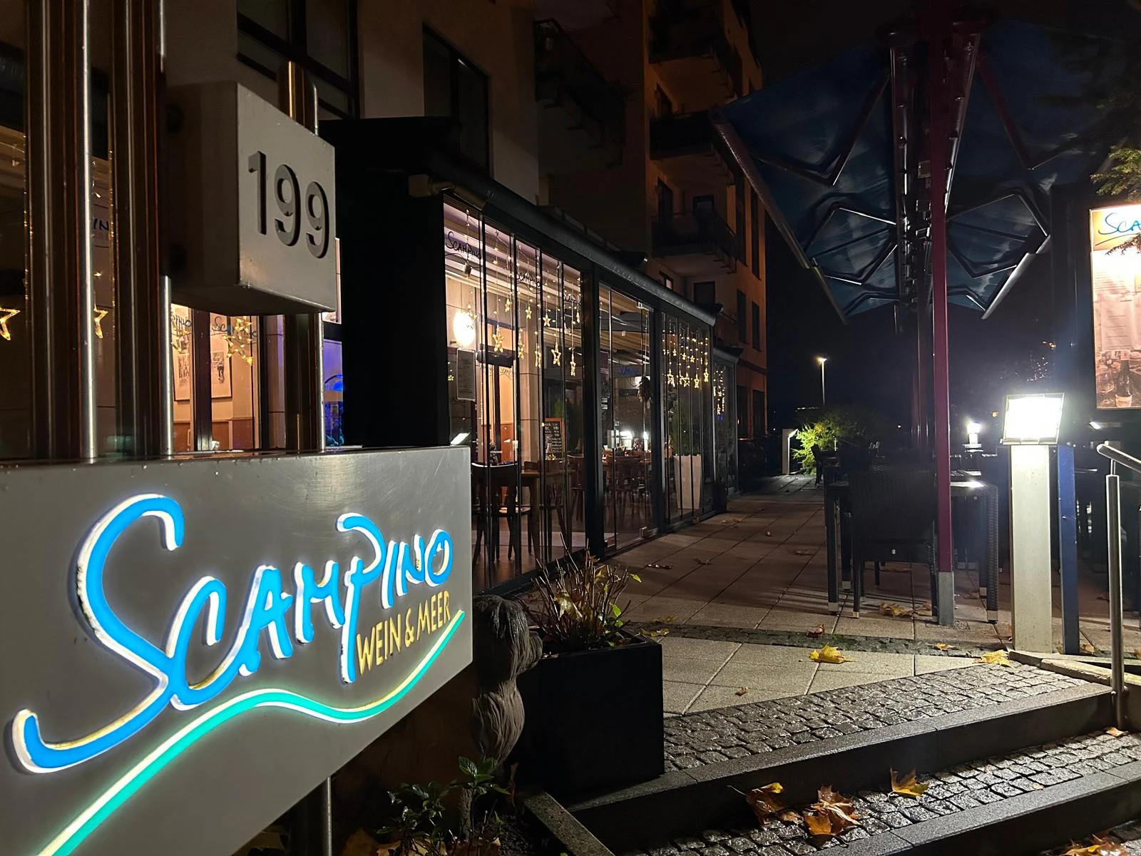 Willkommen auf unserer sonnigen Terrasse – Ihrem persönlichen Rückzugsort mit Urlaubsatmosphäre. Umgeben von mediterranen Pflanzen, warmem Licht und stilvollen Sitzmöbeln genießen Sie bei Scampino Wein & Meer entspannte Stunden unter freiem Himmel. Ob ein Glas Wein bei Sonnenuntergang, ein gemütliches Essen mit Freunden oder eine romantische Sommernacht – unsere Terrasse bietet den perfekten Rahmen für jeden Anlass.